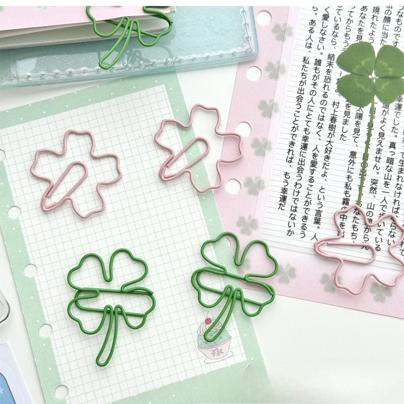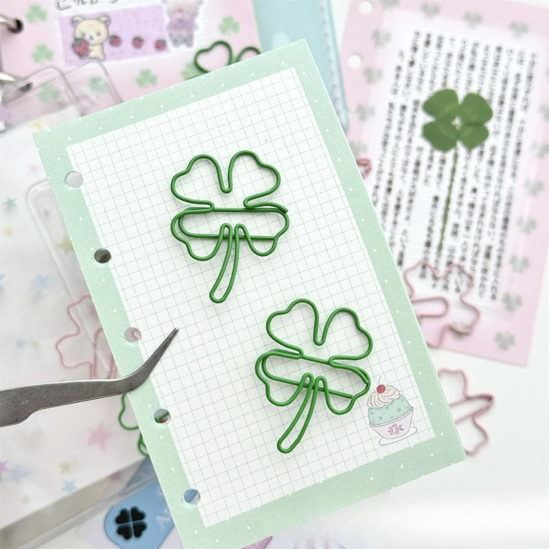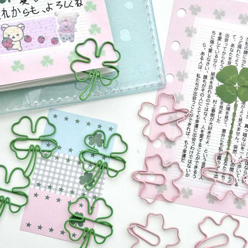 10 pièce/ensemble Ins Design créatif trèfle trombone vert rose couleur Scrapb
