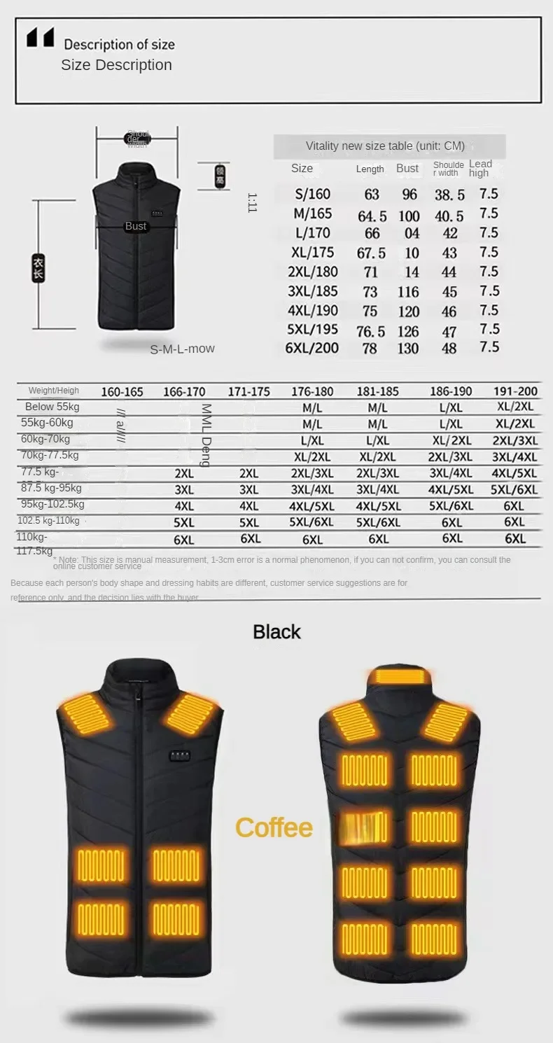 17 zones gilet auto-chauffant quatre interrupteurs contrôle hommes veste chauff