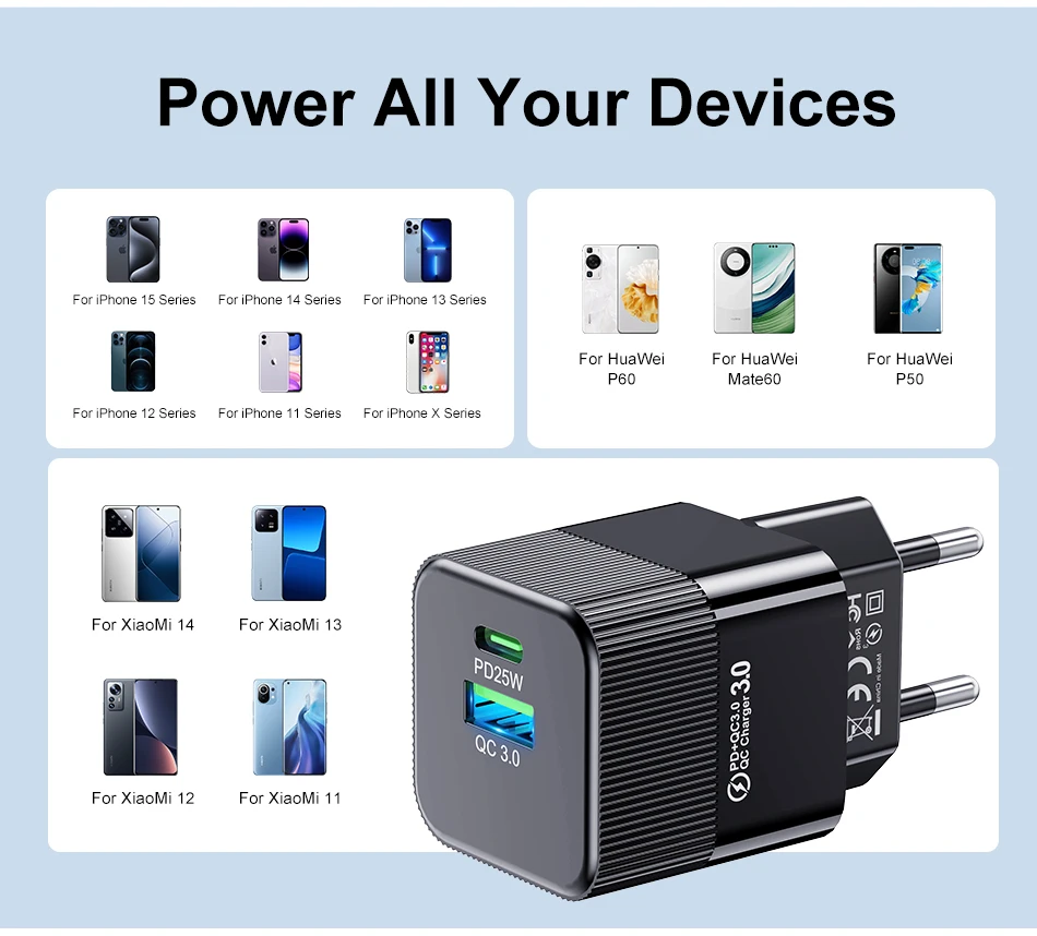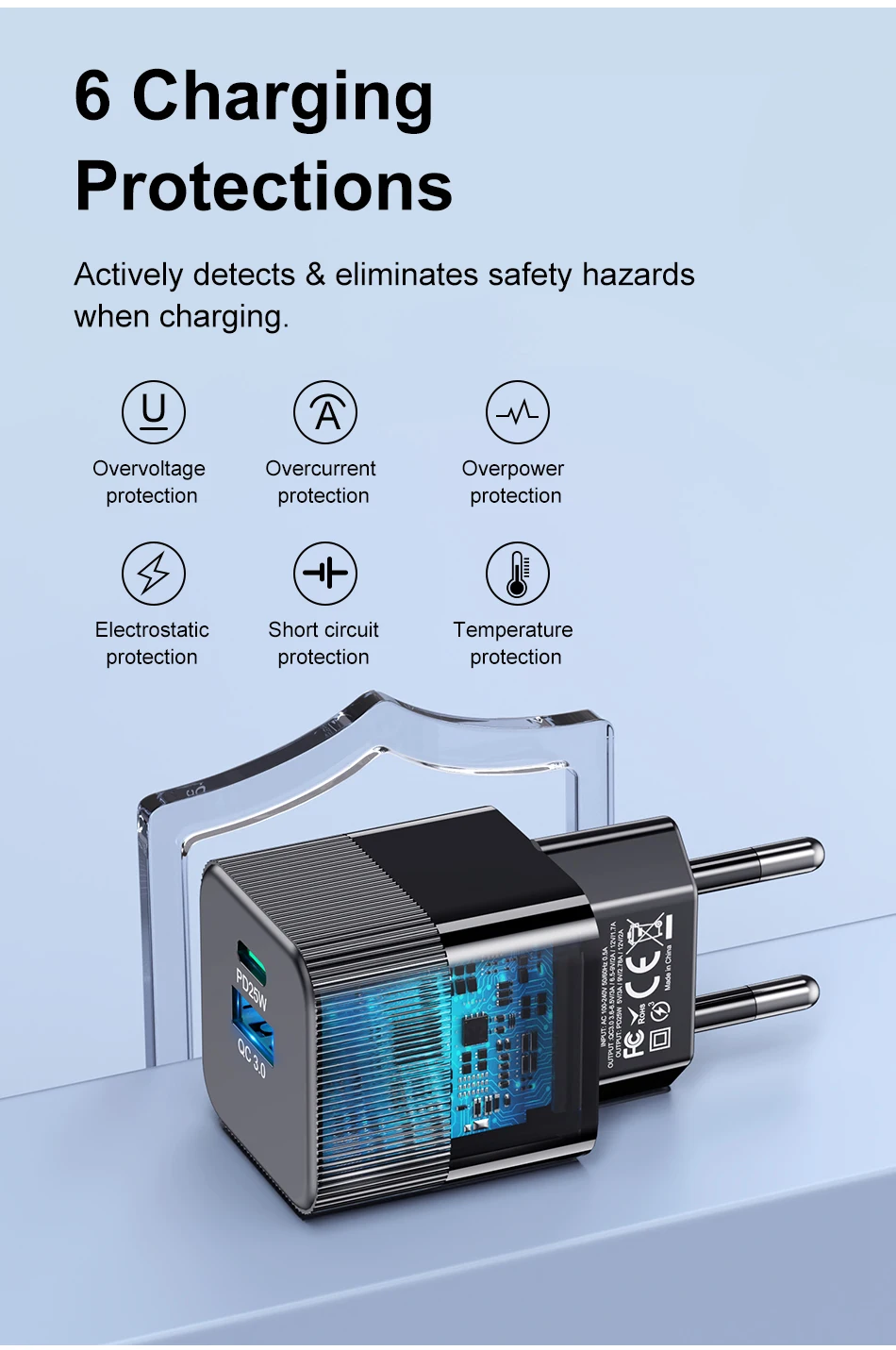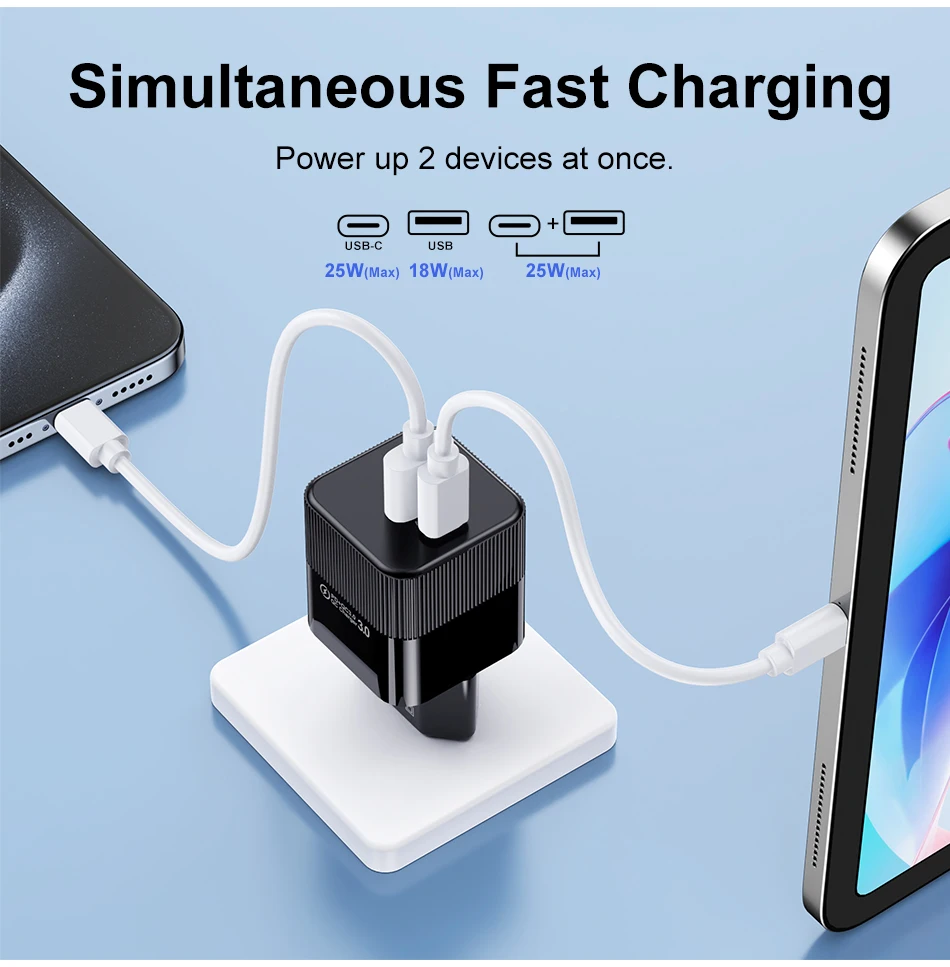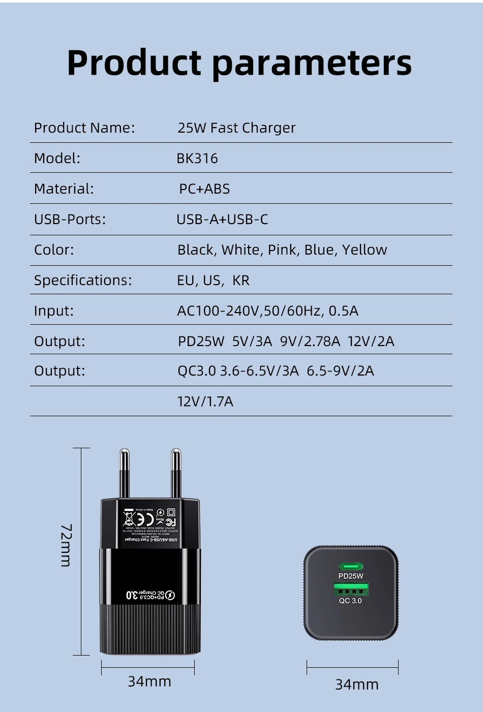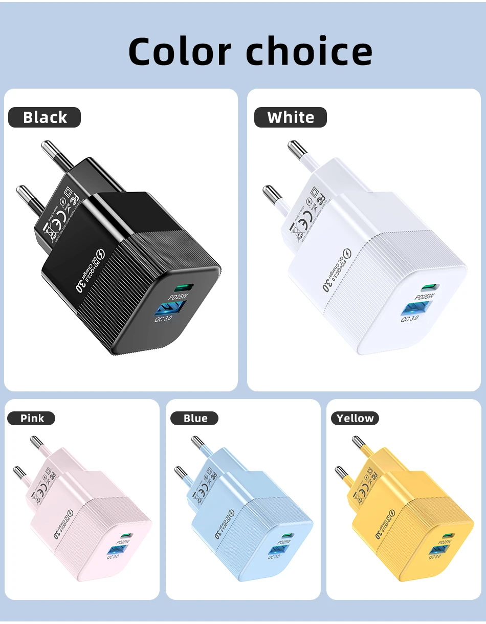 2 Ports 25W Mini USB C PD chargeur rapide KR prise ue US téléphone de voyage a