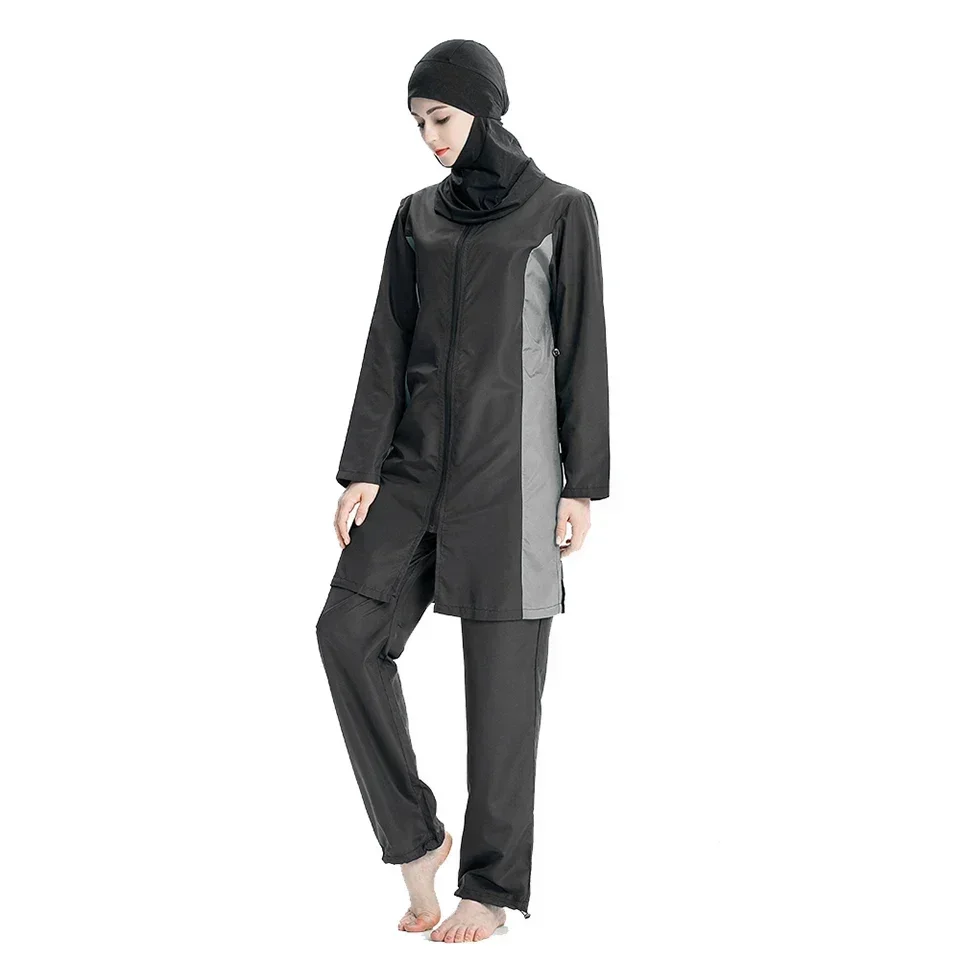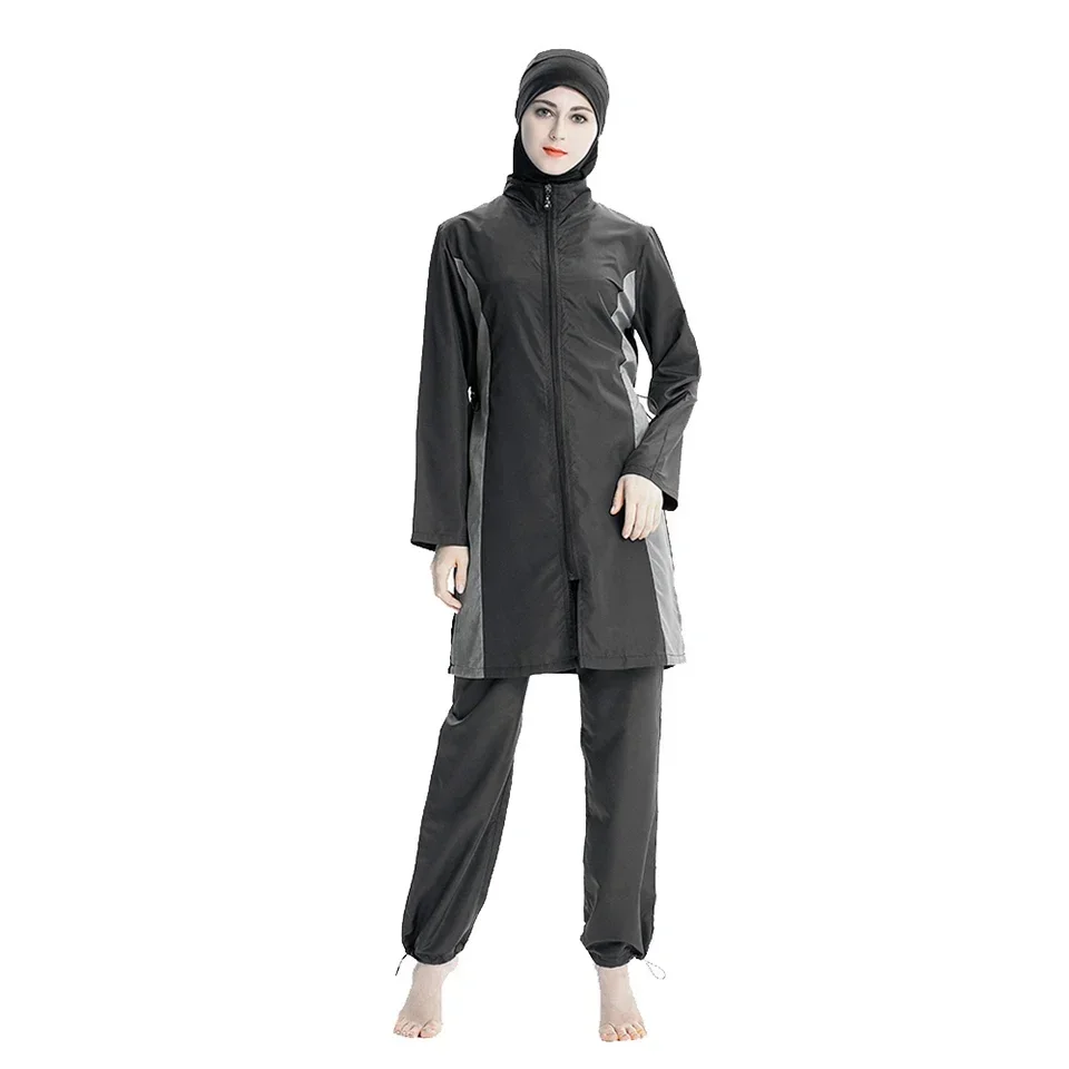 Maillot de bain musulman 3 pièces à manches longues (haut + hijab + pantalon)