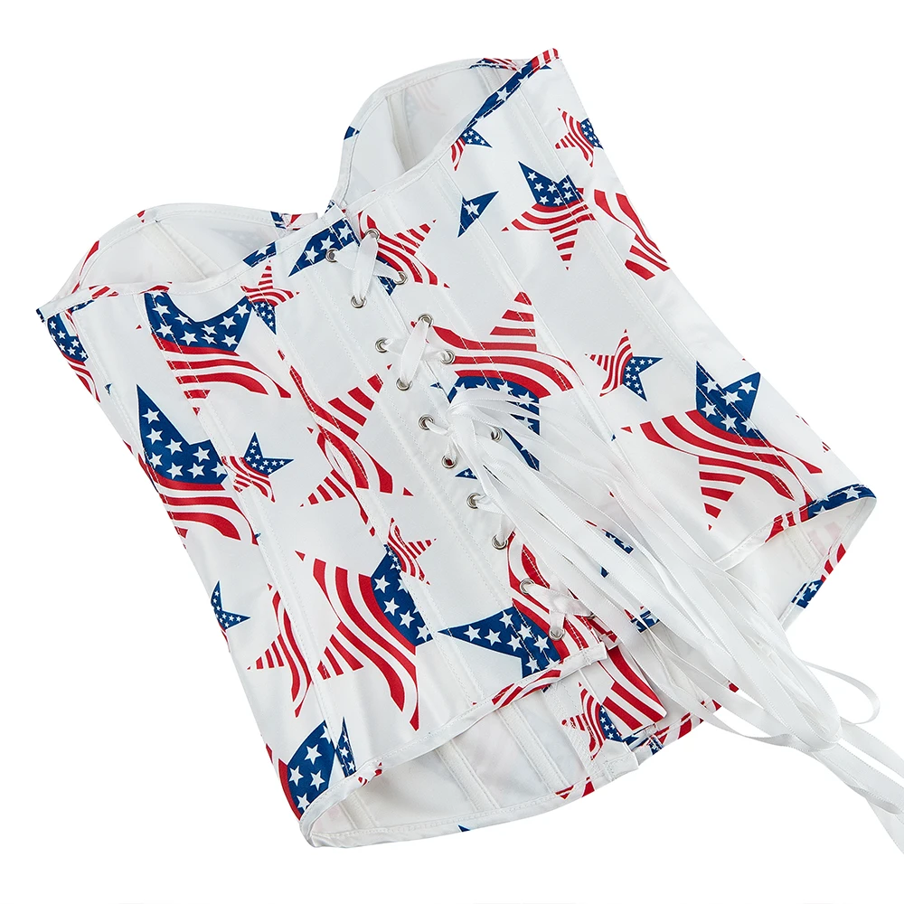 Corset overbust imprimé drapeau américain Bustier Top Fashion Lingerie Corselet