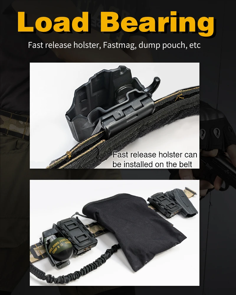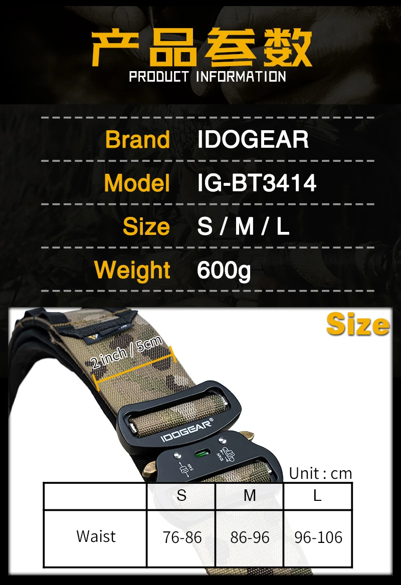 IDOGEAR deux-en-un 2" ceinture tactique Combat libération rapide boucle en métal hommes MOLLE ceintures