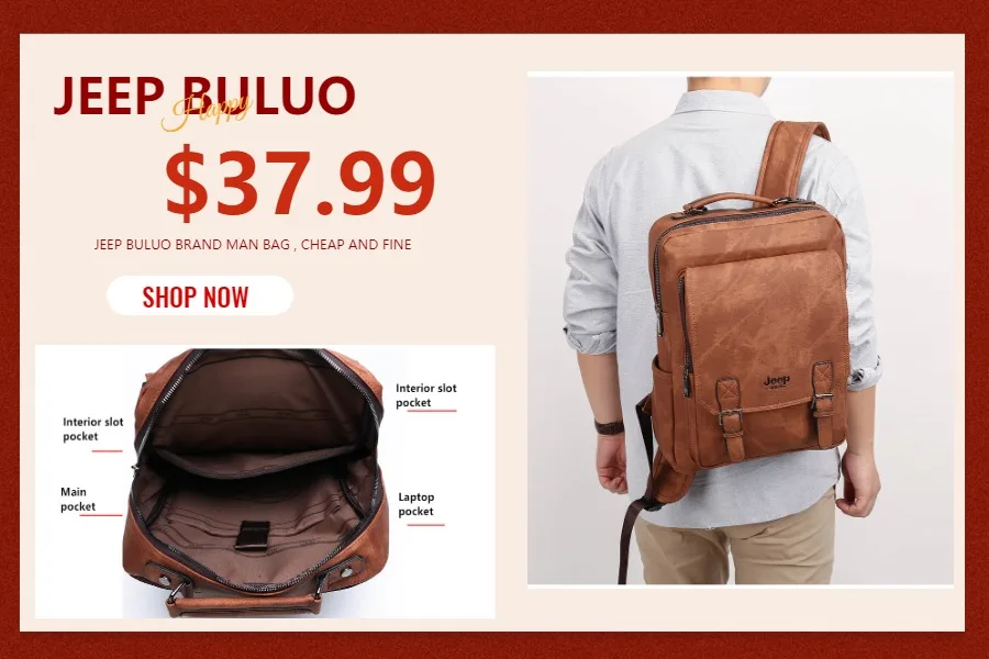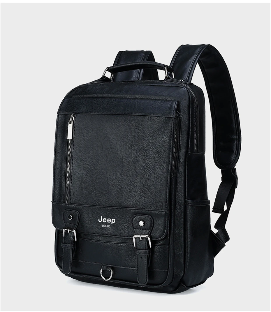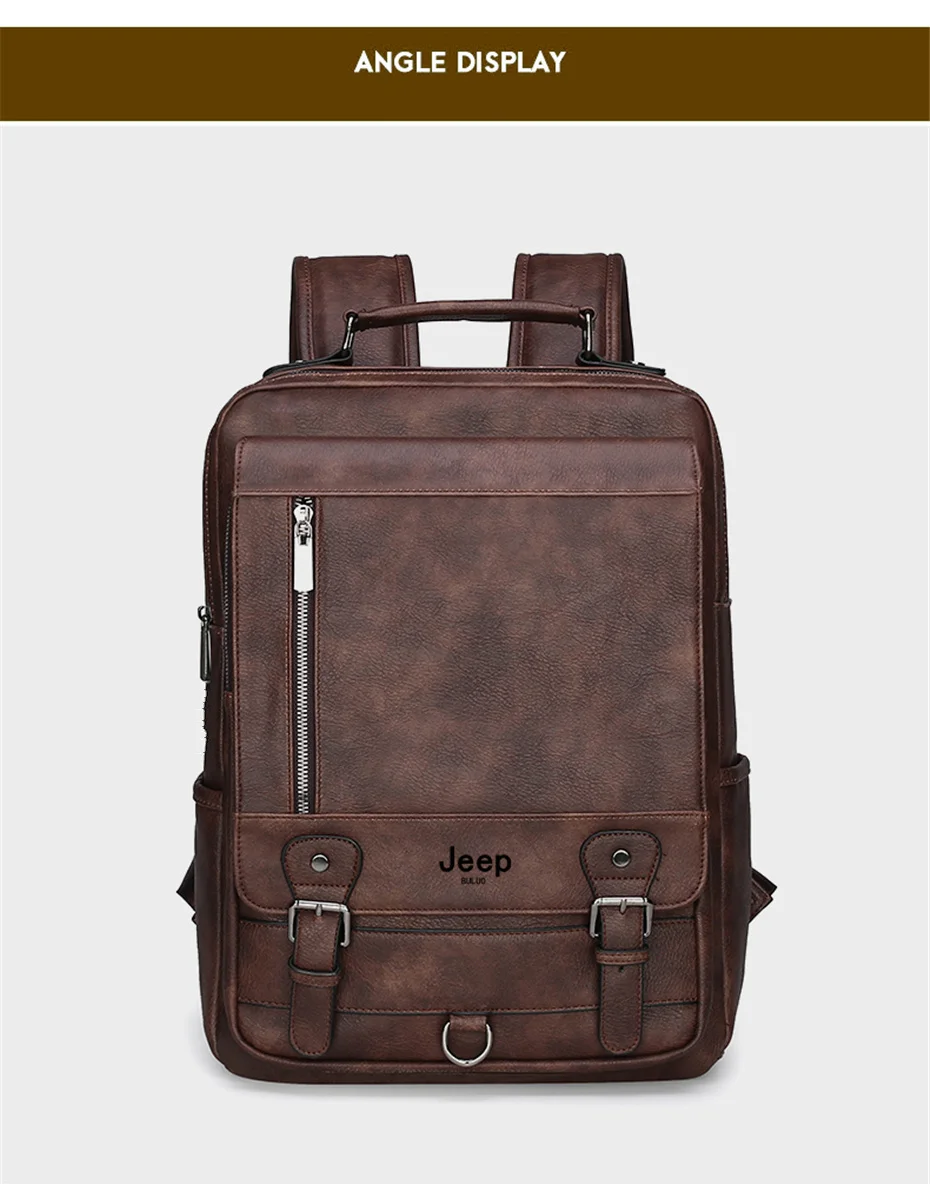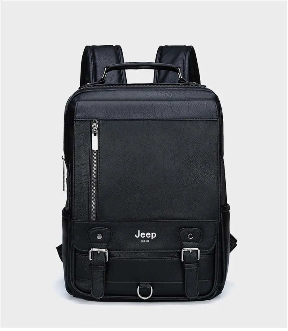 JEEP BULUO cuir hommes sac à dos Design de luxe affaires mâle 15.6" sac pour ordinateur portable mode grande capacité voyage collège sac d'école