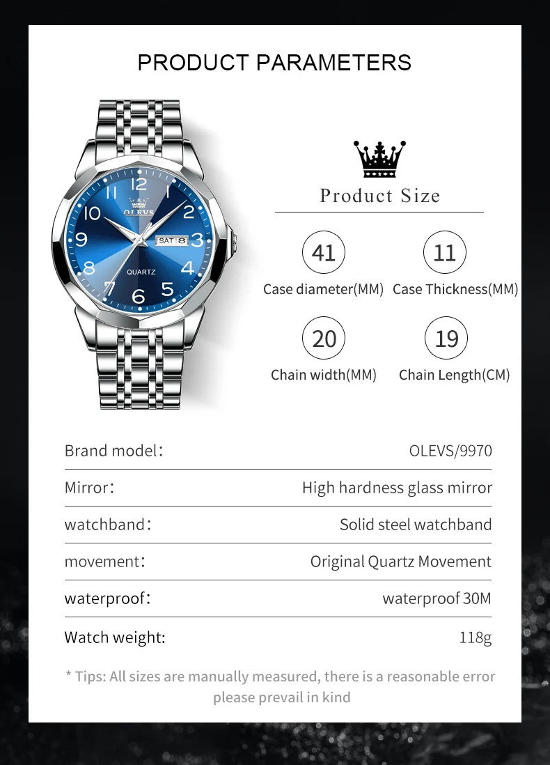 Caractéristique: Résistant aux chocs,Date d’auto,Calendrier complet,Résistant à l'eau,Affichage de la semaine,luminous hands