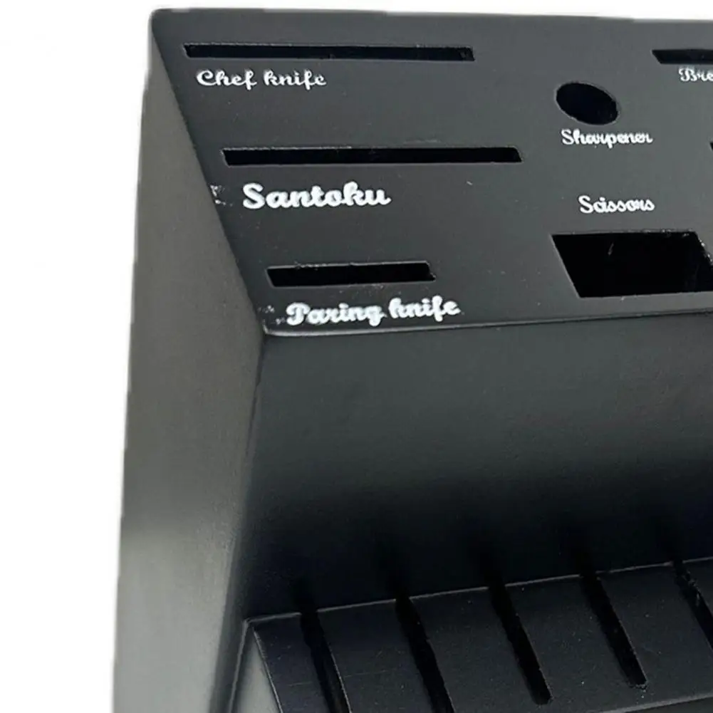 Peut accueillir jusqu'à 12 fraises, avec des fentes supplémentaires pour les ciseaux de cuisine et la tige d'affûtage.