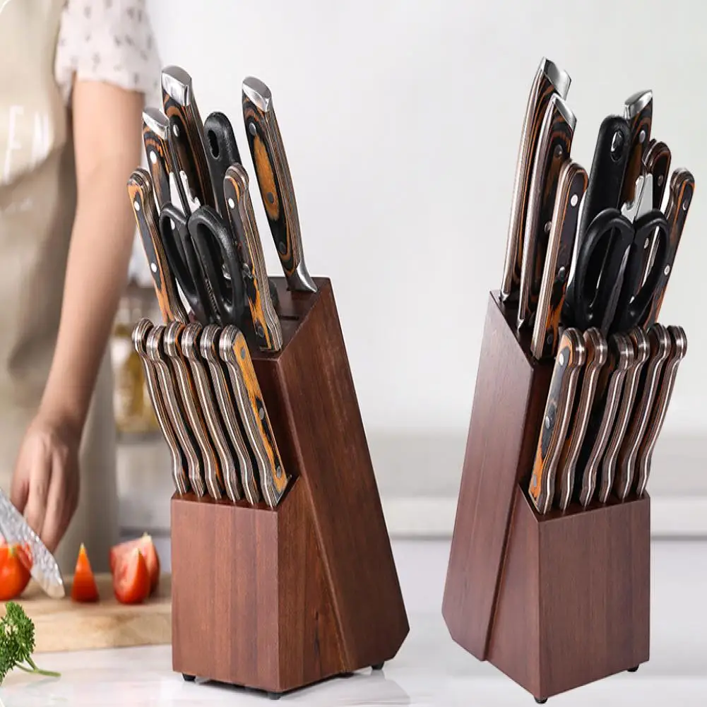 Fente de rangement pour ciseaux de cuisine Porte-couteau en bois durable Organisateur à 14 fentes pour comptoir de cuisine pour la cuisson pour comptoir