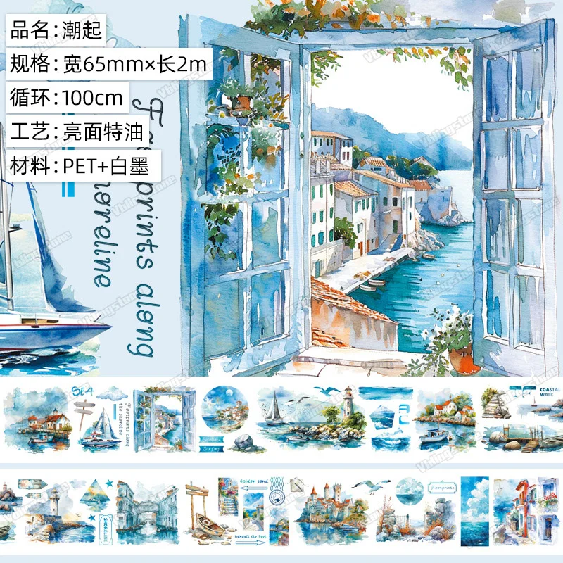 Ruban Washi paysage de la ville pour scrapbooking, ruban l'horloge, masquage de