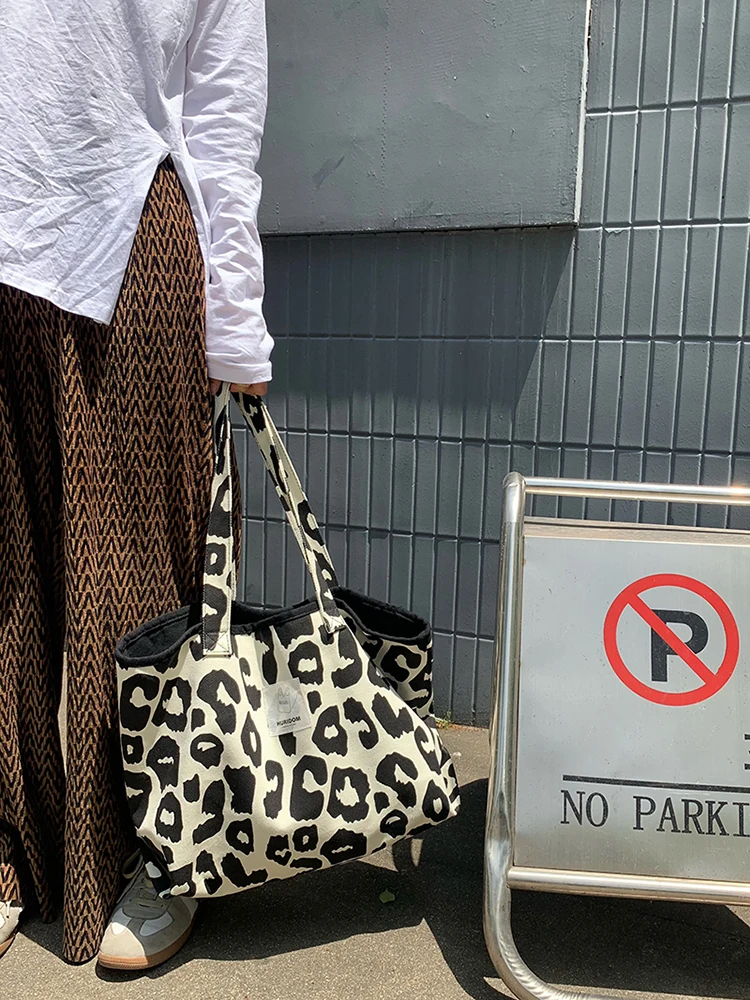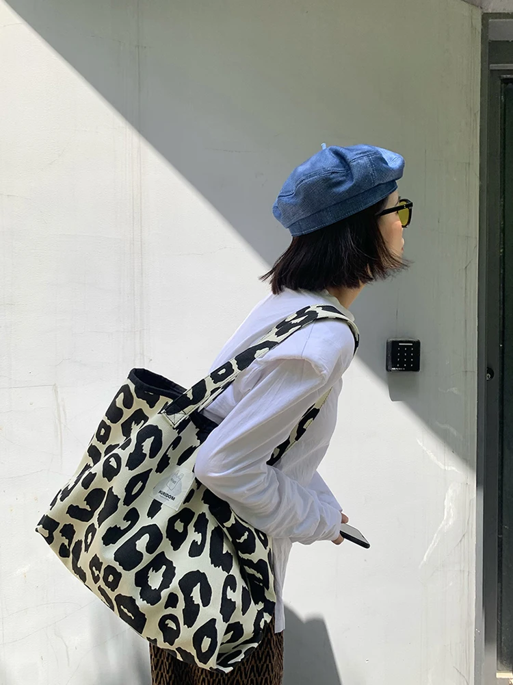 Sac de Shopping imprimé léopard pour femmes, sac en toile décontracté de gra