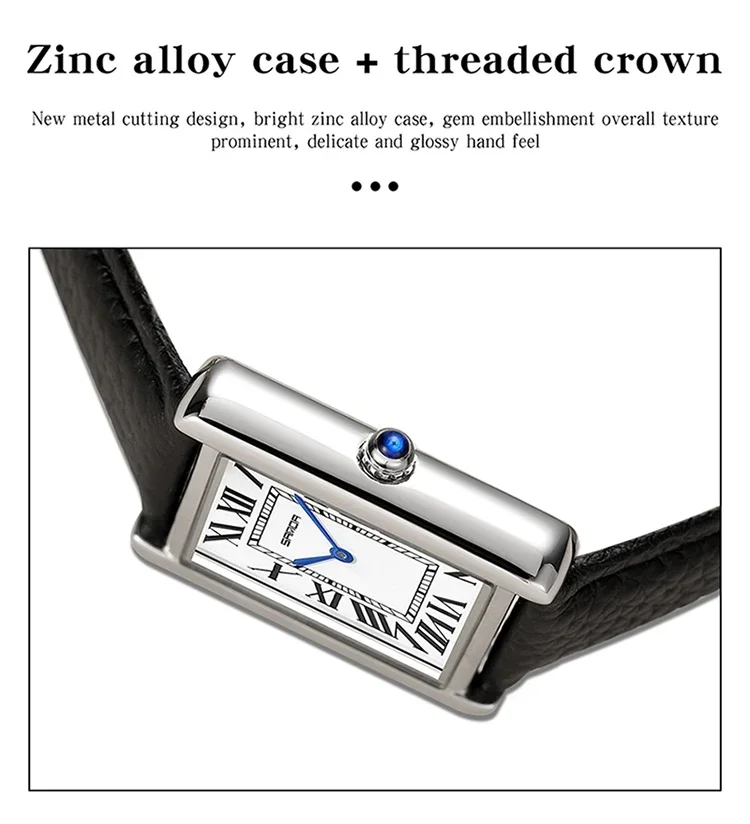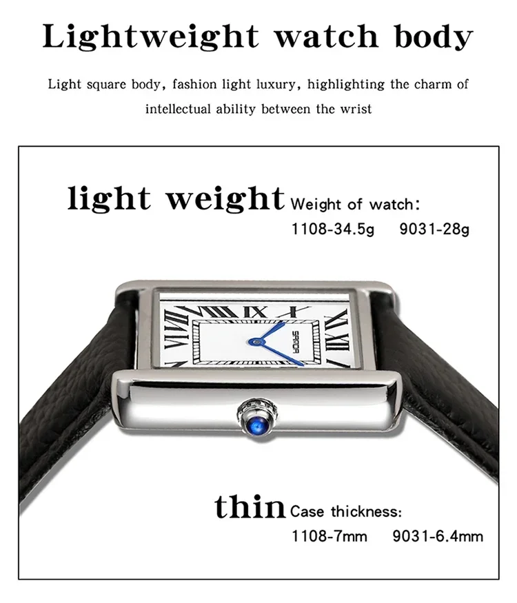 • Conception de cadran carré:Design unique et élégant qui se démarque des autres montres.